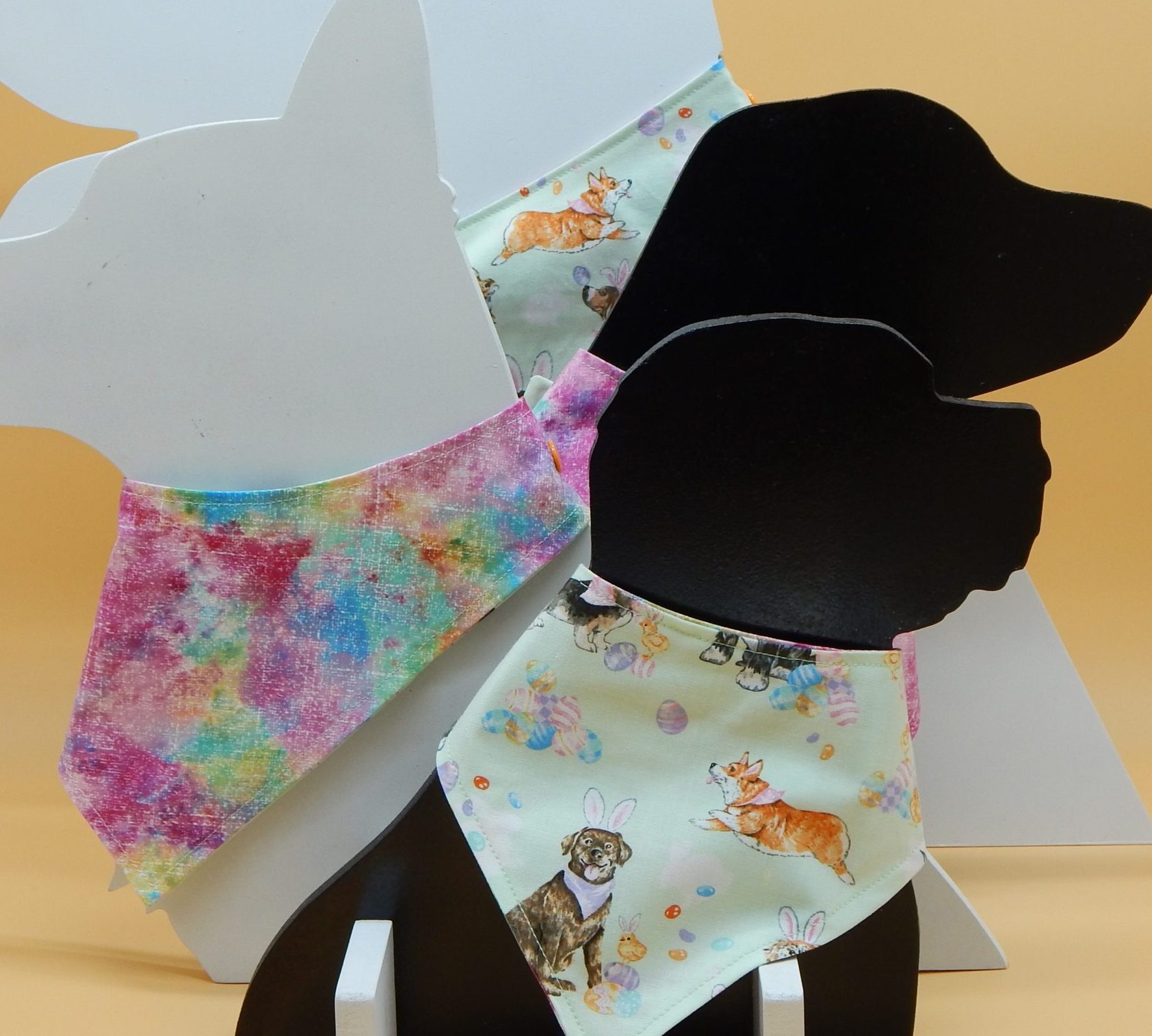 The front has a mint green background with festive dogs, eggs and jelly beans while the reverse is covered with a blend of beautiful Easter colors.